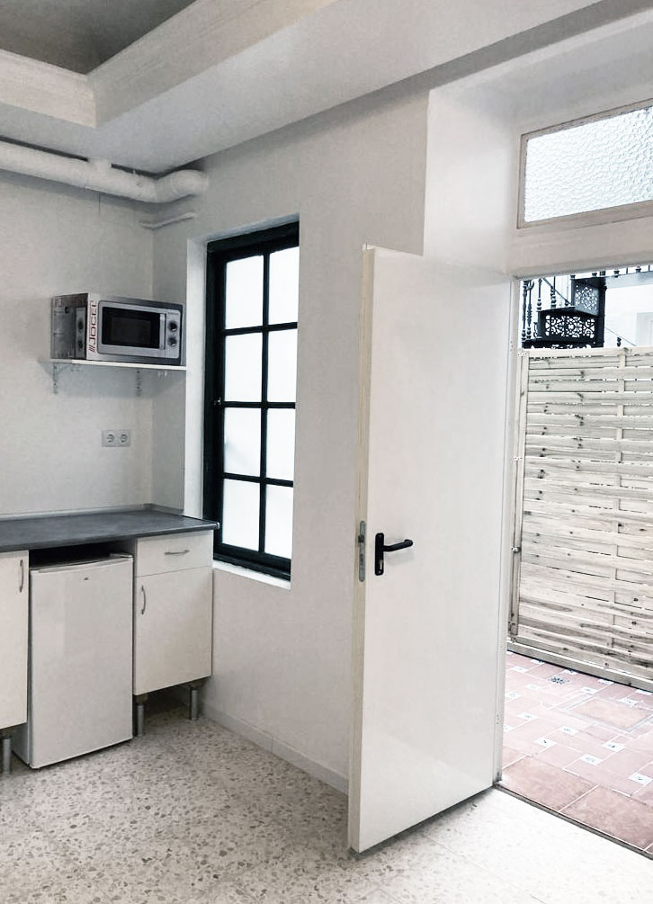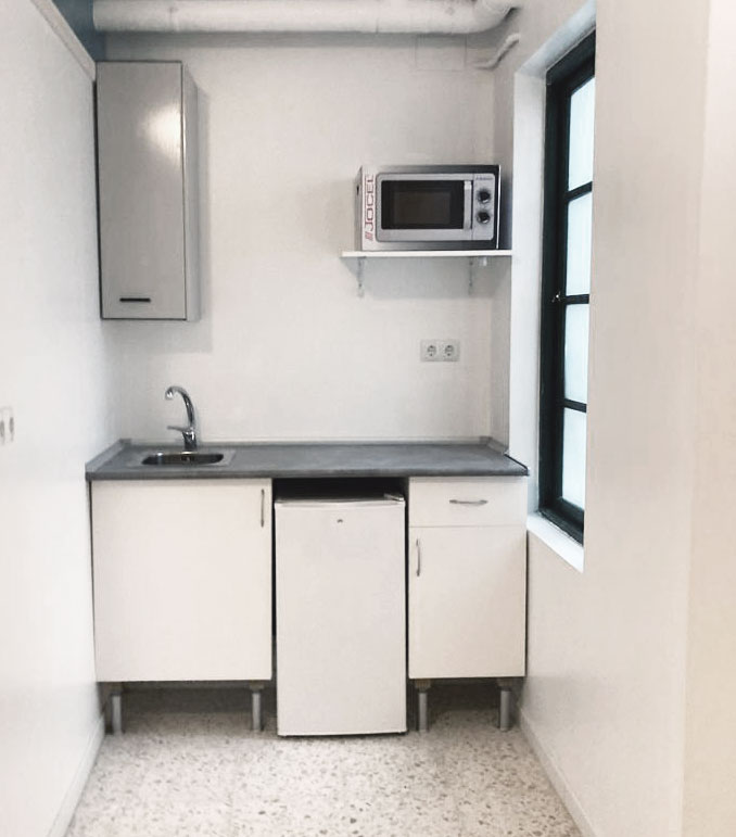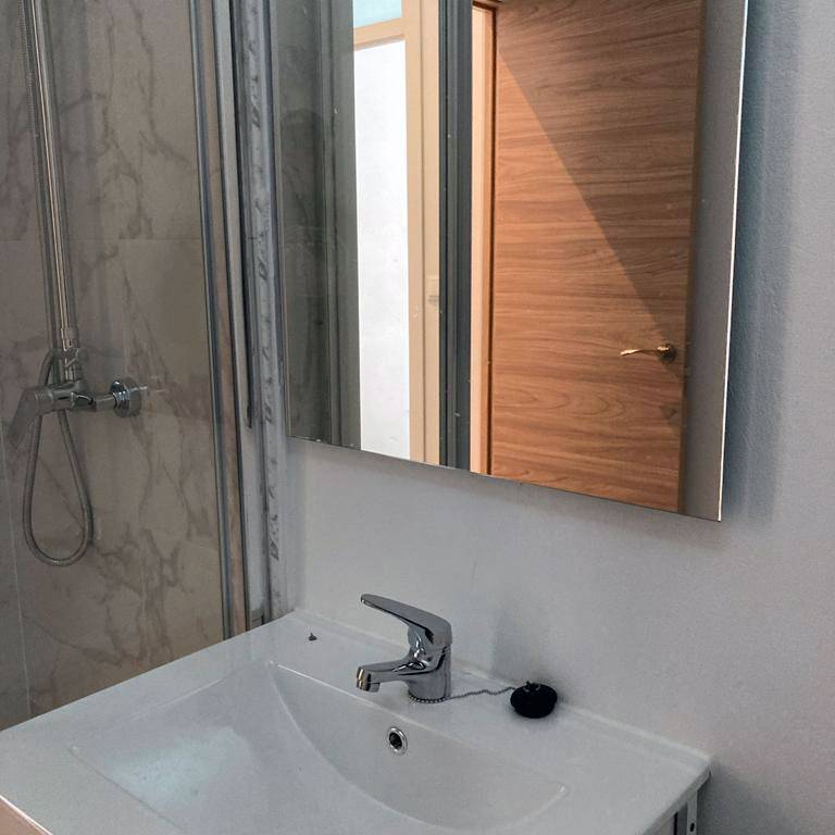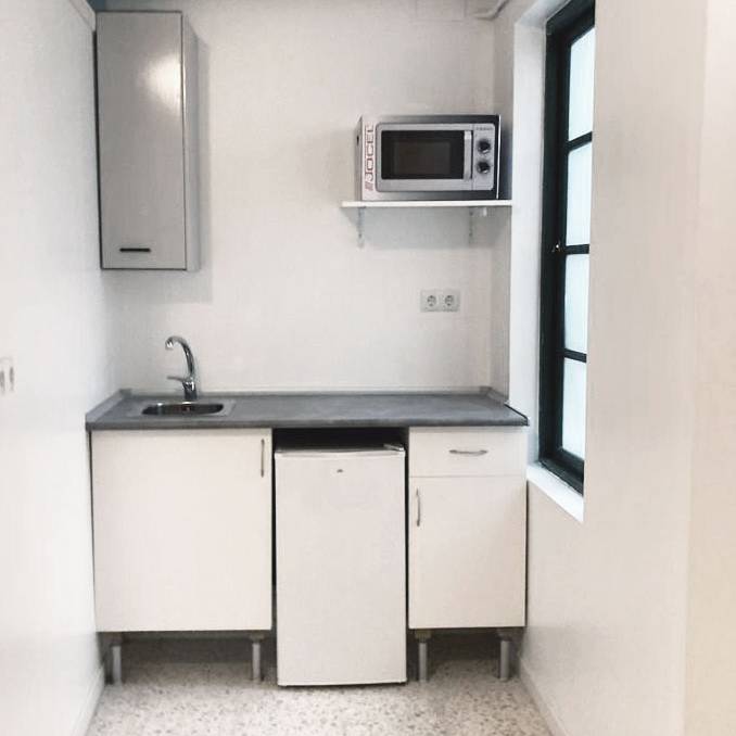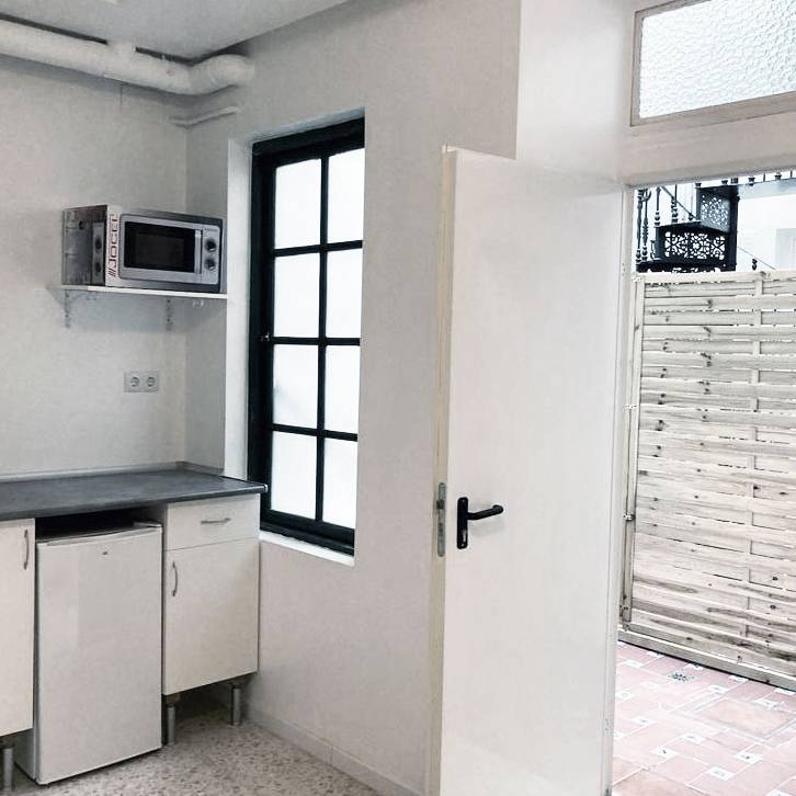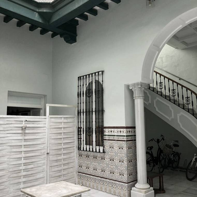 Nuestros ocho estudios, que cuentan con diferentes tamaños para adaptarse a cada necesidad, están equipados con cama, armario, una pequeña cocina funcional y cuarto de baño completo. Las estancias se distribuyen en dos plantas alrededor de un patio típico gaditano que dota al edificio de un encanto especial. Además, el alojamiento dispone de zonas comunes diseñadas para tu comodidad, como una lavandería y una terraza perfecta para disfrutar del aire libre.